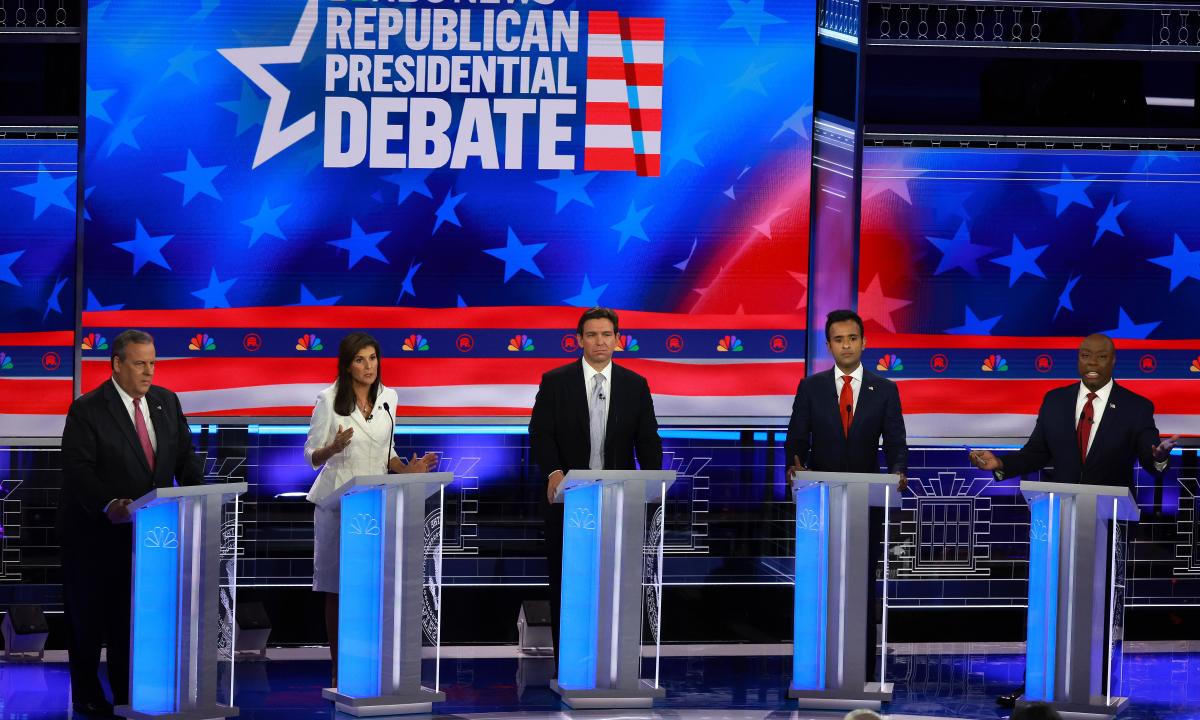 المناقشة، ناقص دونالد ترمب، المرشح الأوفر حظًا لترشيح الحزب لعام 2024 والذي كان يستضيف تجمعًا خاصًا به في مكان آخر بالمنطقة، كان أمرًا أكثر مرارة من سابقيه في ويسكونسن وكاليفورنيا. يتراجع السجال اللفظي المفعم بالحيوية أحيانًا إلى الإهانات نيكي هالي في وقت ما وصفت أحد منافسيها بـ “الحثالة”.