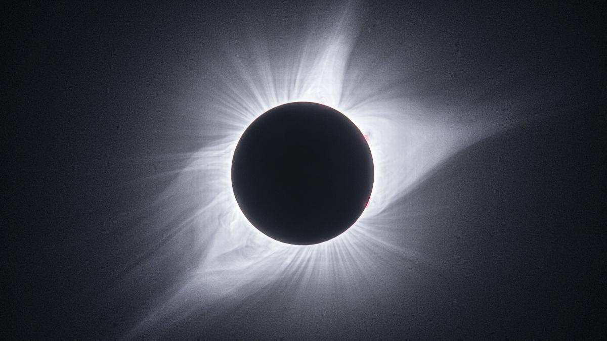 أثناء الكسوف الكلي للشمس، ترى العين المجردة الفرق بين الطرفين، وهو أمر واضح. وقال فرينش: “عند الحد الأدنى من الطاقة الشمسية، عندما تكون الشمس هادئة، يقتصر هيكل الهالة على خط الاستواء”. “شرائط طويلة وممتدة ومرئية تنبثق من الشمس.” ومع ذلك، خلال ذروة الكسوف الشمسي، يمكن لمطاردي الكسوف أن يتوقعوا بعض النشاط في الإكليل الذي يمتد إلى ما وراء خط الاستواء ويصل إلى القطبين. وقال فرينش: “إذا رأيت كسوفًا خلال هذه الفترة النشطة، فقد يبدو هالة الشمس مثل شكل النجمة التقليدي الذي رسمته على الأرجح عندما كنت طفلاً، مع وجود أشرطة تشير في جميع الاتجاهات”.