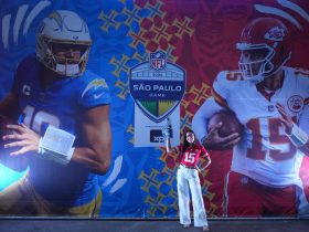 اللعبة، التي أقيمت في T-Mobile Arena في لاس فيغاس، بلغ متوسط ​​عدد مشاهديها 4.58 مليون مشاهد على قناة ABC وESPN2. وصلت المباراة إلى ذروتها عند حوالي 5.68 مليون مشاهد، بزيادة 46% عن المباراة الافتتاحية للموسم العام الماضي. تم بث البث العادي للعبة على قناة ABC، بينما تم بث بث بديل مع الممثل الكوميدي كيفن هارت على ESPN2 – على غرار “ManningCast” أثناء “Monday Night Football”. يمثل هذا البث البديل حوالي 10٪ من إجمالي الجمهور.