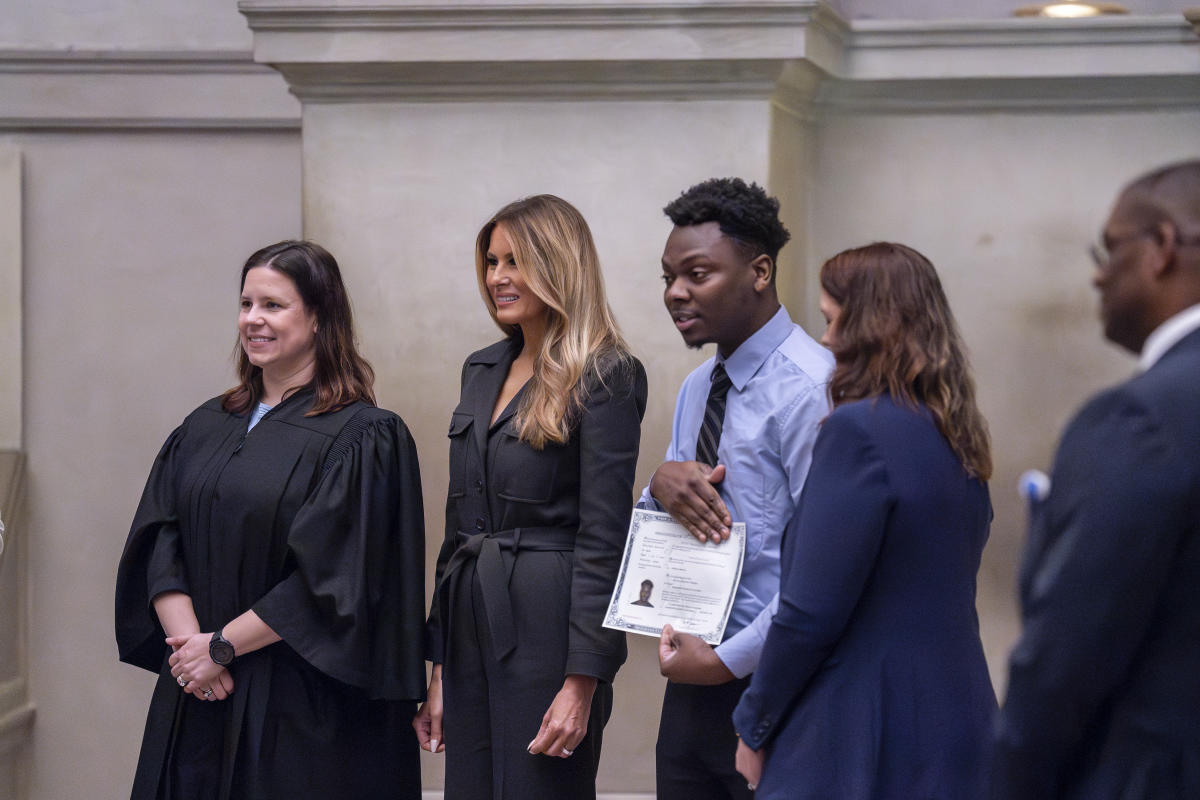 في ظهور علني نادر للسيدة الأولى السابقة ميلانيا ترامب وشددت على أهمية «حراسة حريتنا» والمسؤوليات التي تصاحب المواطنة الأميركية، وذلك خلال كلمة ألقتها الجمعة في حفل التجنس في الأرشيف الوطني.