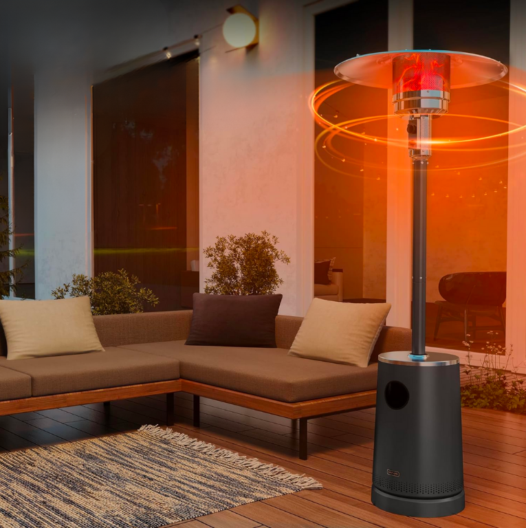 مع سعة حرارية هائلة تبلغ 50000 وحدة حرارية بريطانية، يوفر سخان الفناء هذا مجالًا دافئًا يبلغ قطره 20 قدمًا حوله. يمكن أن يعمل الجزء العلوي من الخزان كطاولة أيضًا!