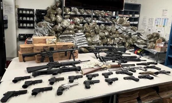وقدم الضباط مذكرة تفتيش يوم الاربعاء. وصادروا 33 سلاحًا و150 ألف طلقة ذخيرة و500 رطل من الماريجوانا وحوالي 20 ألف دولار نقدًا.
