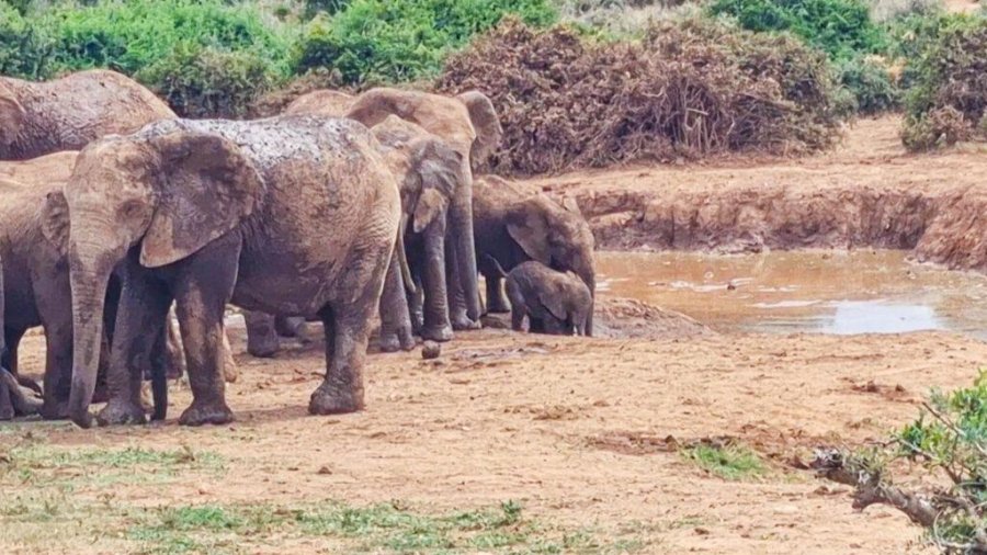 “وهذا هو الوقت الذي رصدنا فيه الطفل الصغير اللطيف بين إخوته الأكبر حجمًا. كان الطفل الصغير يحاول أيضًا الحصول على نصيبه من الماء. ومع ذلك، نظرًا لكونه صغيرًا جدًا، كان عليه أن يصل مباشرة إلى حافة الماء ليحصل على أي فرصة للحصول على الماء. رشفة. وهذا يعني للأسف أنها كانت واقفة على الجزء الزلق للغاية من حفرة المياه. “