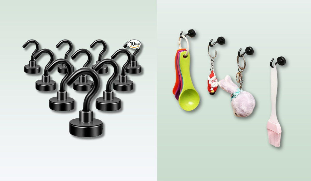 لا حاجة إلى مسامير أو براغي أو مواد لاصقة: السطح المعدني هو كل ما تحتاجه لتعليق ما يصل إلى 27 رطلاً من هذه الخطافات.