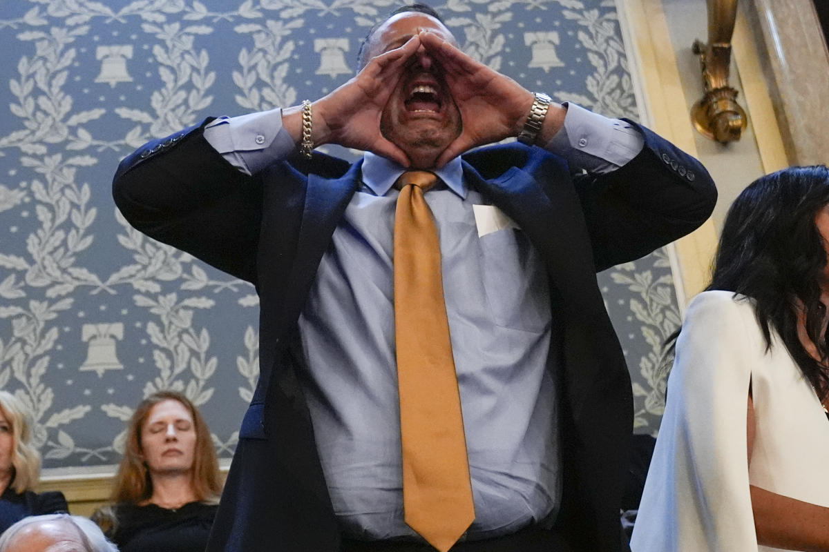 وقالت شرطة الكابيتول الأمريكية في بيان أرسل عبر البريد الإلكتروني: “الليلة في حوالي الساعة 10:15 مساءً، عطل رجل خطاب حالة الاتحاد بالصراخ”. “حذره ضباطنا من التوقف وعندما لم يفعل، تم إخراج الرجل من صالات العرض في المنزل وتم القبض عليه بسبب قانون العاصمة § 22-1307 – الازدحام أو العرقلة أو الإزعاج. إن تعطيل الكونجرس والتظاهر في مباني الكونجرس أمر غير قانوني.