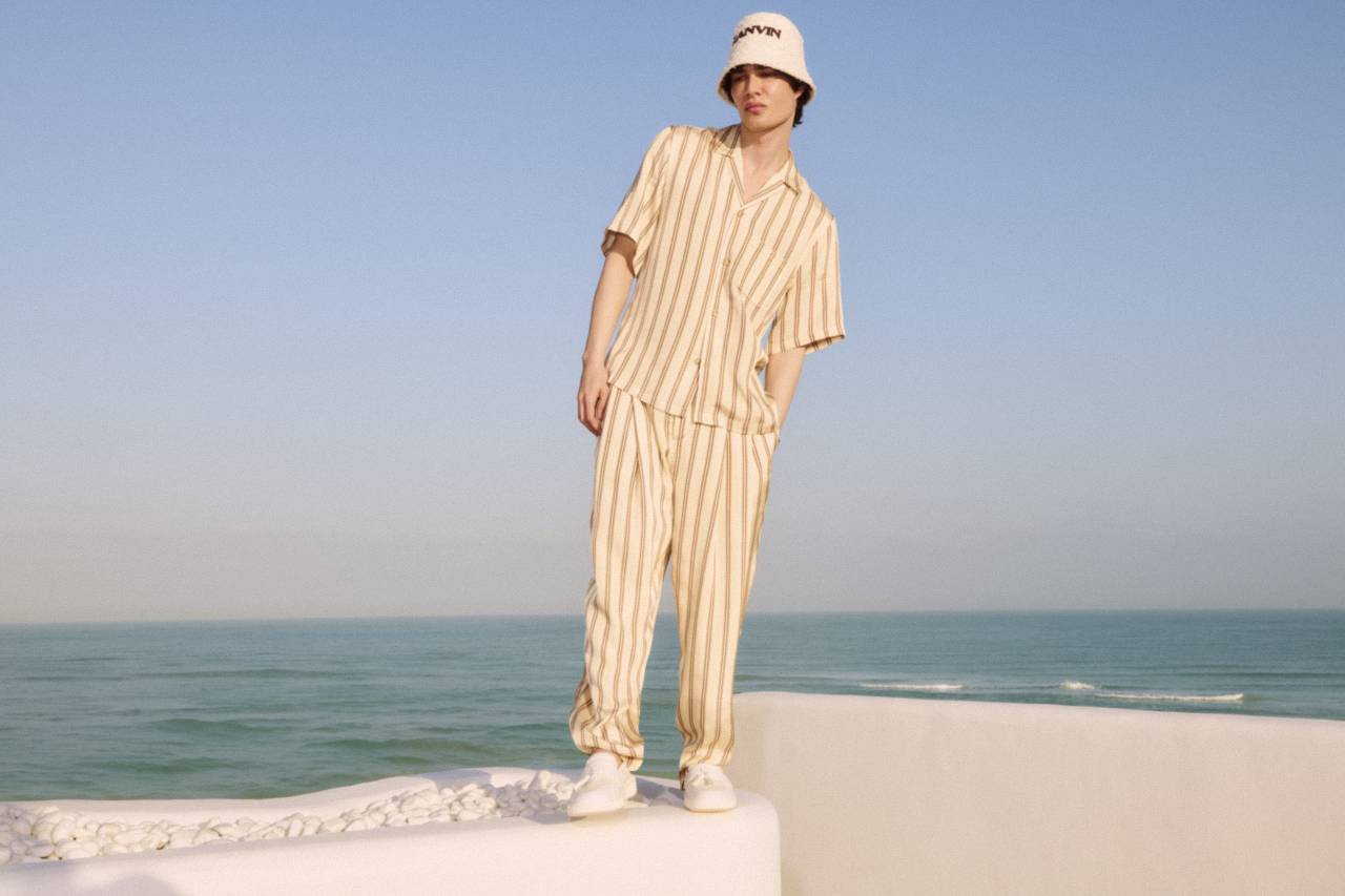 ويمكن لعشاق الموضة التألق بمجموعة من التصاميم المتناسقة من علامة King & Tuckfield، بما فيها القميص المقلّم من الصوف الذي تكتمل أناقته مع سروال من الصوف المقلّم. كما تحلو الإطلالة مع حذاء Miguel من جلد الغزال من علامة Frescobol Carioca.