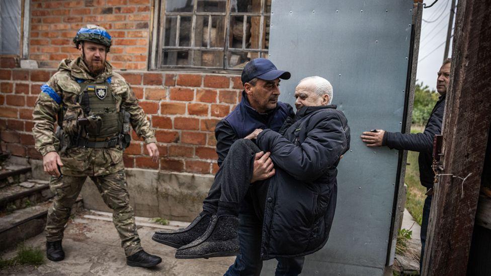 فر آلاف المدنيين غربًا في الأيام الأخيرة باتجاه مدينة خاركيف، ثاني أكبر مدينة في أوكرانيا، بما في ذلك من بلدة فوفشانسك، التي تقع على بعد 74 كيلومترًا (45 ميلاً).