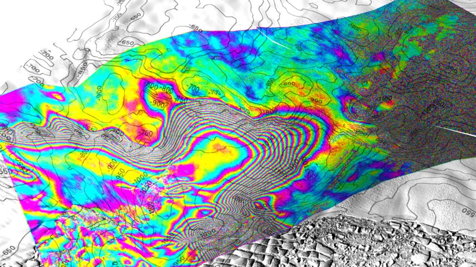 استخدم فريق من علماء الجليد – بقيادة علماء من جامعة كاليفورنيا في إيرفين – بيانات رادارية عالية الدقة عبر الأقمار الصناعية، تم جمعها بين مارس ويونيو من العام الماضي، لإنشاء صورة بالأشعة السينية للنهر الجليدي. وقد سمح لهم ذلك ببناء صورة للتغيرات التي طرأت على “الخط الأرضي” لجزيرة ثويتس، وهي النقطة التي يرتفع عندها النهر الجليدي من قاع البحر ويصبح جرفًا جليديًا عائمًا. تعتبر خطوط التأريض حيوية لاستقرار الصفائح الجليدية، ونقطة ضعف رئيسية في منطقة ثويتس، ولكن كان من الصعب دراستها.