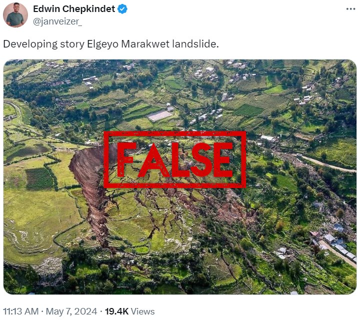 تمت مشاركة منشور يدعي أنه يظهر آثار الانهيار الأرضي في كينيا أكثر من 50 مرة منذ نشره على X في 7 مايو 2024.