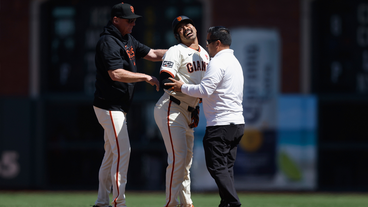 غادر لاعب القاعدة الأول لامونت ويد جونيور مباراة العمالقة ضد فيلادلفيا فيليز يوم الاثنين في أوراكل بارك بعد تعرضه لإصابة واضحة في ساقه اليسرى.
