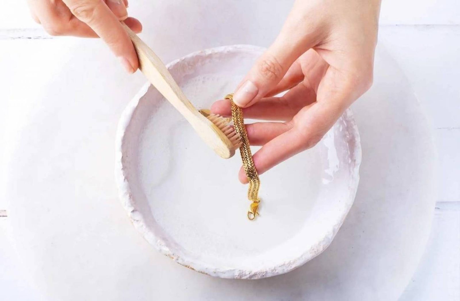 • فرك السلاسل الذهبية بفرشاة ناعمة صغيرة، ويصار إلى غمسها في معجون الأسنان ومحلول الماء ثم فرك المجوهرات برفق. وتذكروا أن عملية الفرك يجب أن تتم بوتيرة بطيئة.