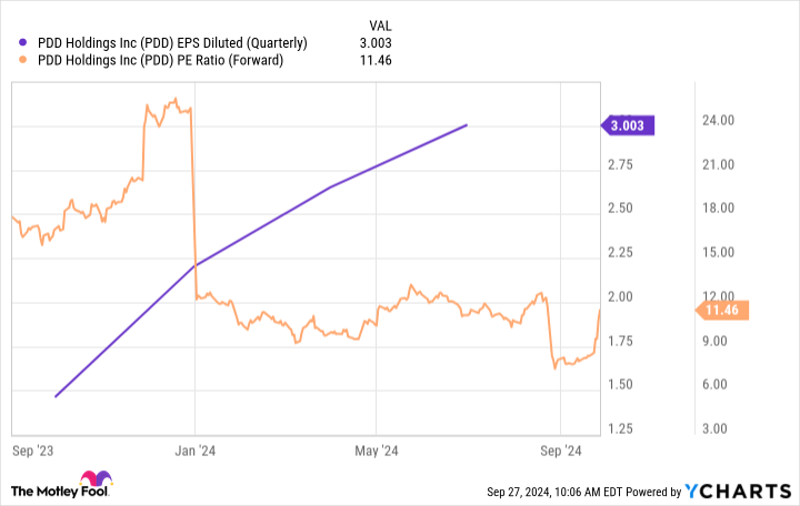 تشمل الشركات الأخرى المملوكة لشركة PDD خدمة توصيل البقالة في اليوم التالي Duo Duo والعلامة التجارية الأمريكية المتنامية Temu، وهي شركة تجزئة أخرى عبر الإنترنت معروفة بأسعارها المنخفضة. يتم تداول PDD فقط عند 11.5 مرة من الأرباح الآجلة وشهدت مضاعفة الأرباح خلال العام الماضي. هذا جزء من أطروحة تيبر التي يمكنك من خلالها شراء الأسهم الصينية التي يتم تداولها بمضاعفات الأرباح الرخيصة اليوم والتي يمكن أن تولد نموًا مكونًا من رقمين.