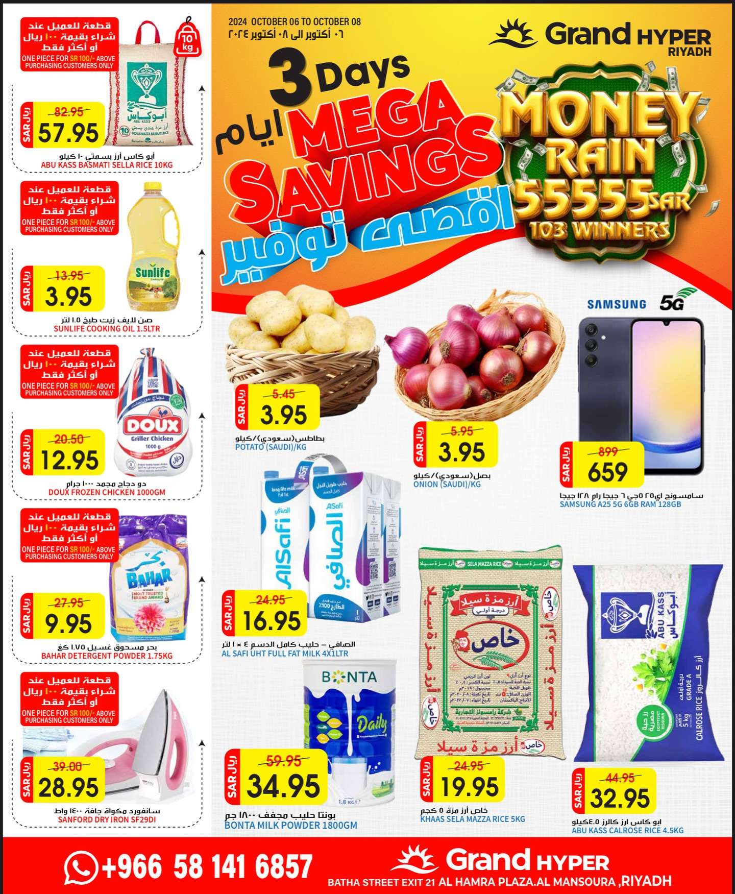 عروض جراند هايبر الرياض الأحد 6 أكتوبر 2024 تقدم تخفيضات ضخمة على مجموعة واسعة من المنتجات الغذائية والسلع الاستهلاكية و تتنوع العروض لتشمل اللحوم الطازجة والمجمدة، المنتجات البحرية الطازجة والأدوات المنزلية، مما يجعلها فرصة ممتازة للتسوق والادخار في نفس الوقت