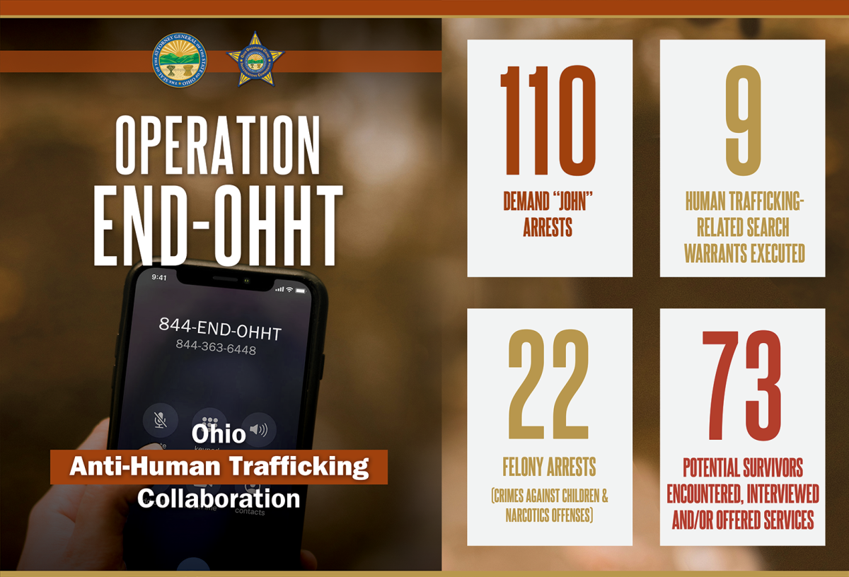 وجرت العملية، التي أطلق عليها اسم “عملية END-OHHT”، في 19 مقاطعة في جميع أنحاء الولاية. ويواجه أكثر من 100 من المعتقلين تهم الانخراط في الدعارة أو الإغراء، ويواجه الآخرون اتهامات بالسعي لممارسة الجنس التجاري مع قاصر و/أو حيازة المخدرات.