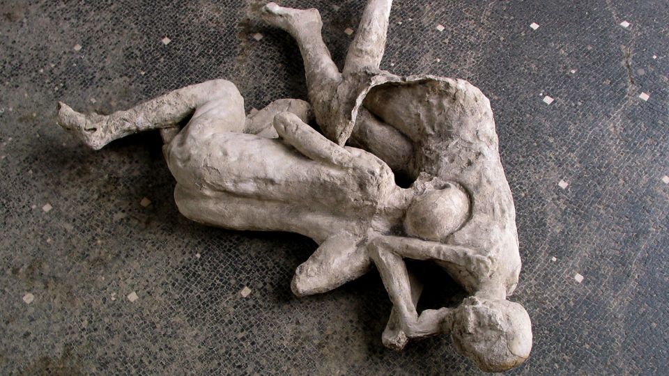 عندما ثار بركان جبل فيزوف عام 79 بعد الميلاد، نفث البركان غازات ساخنة وقاتلة ورمادًا في الهواء، مما أدى إلى مقتل معظم سكان المدينة ببطء. ثم غطى الرماد والصخور البركانية التي تسمى الخفاف مدينة بومبي وسكانها، مما أدى إلى الحفاظ على مشاهد ضحايا دمار المدينة مثل كبسولة زمنية غريبة.