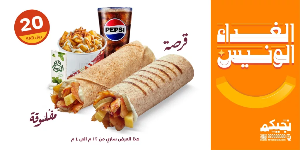 - طعم ينسيك الي حوالك مع شاورما و بطاطا الحارة بـ 24 ريال سعودي