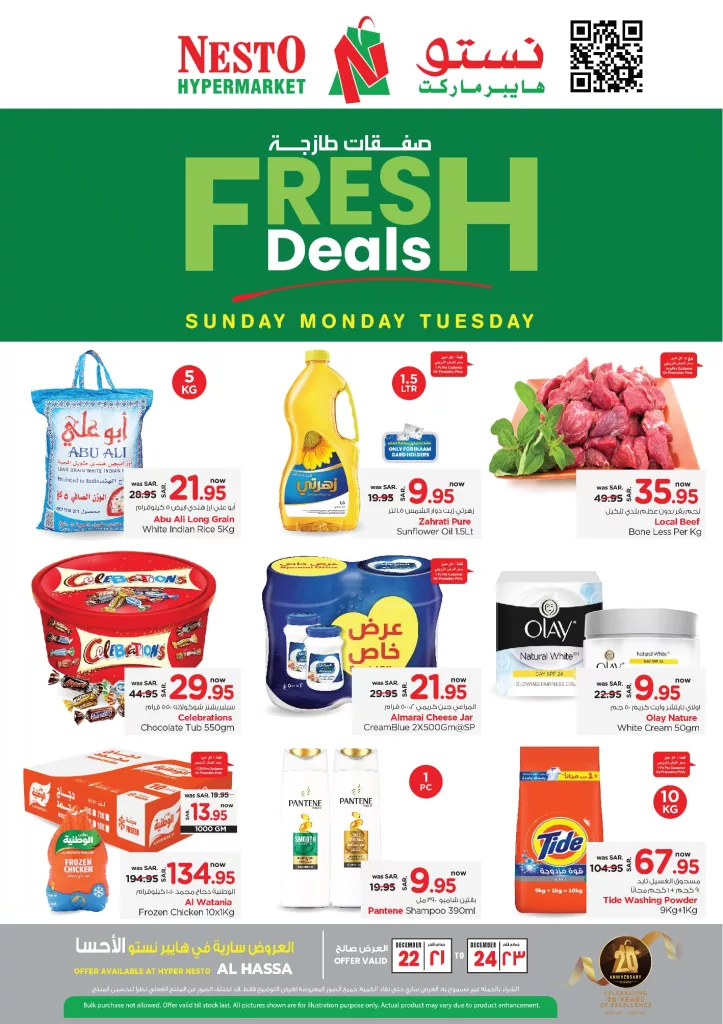 تقدم عروض نستو الأحساء مجموعة متنوعة من الخصومات المميزة على كافة المنتجات الأساسية التي يحتاجها كل منزل و تشمل العروض تخفيضات كبيرة على الفواكه والخضروات الطازجة حيث تم اختيار أفضل الأصناف لضمان الجودة والطزاجة كما يتوفر قسم خاص للحوم والدواجن بأسعار تنافسية جدا