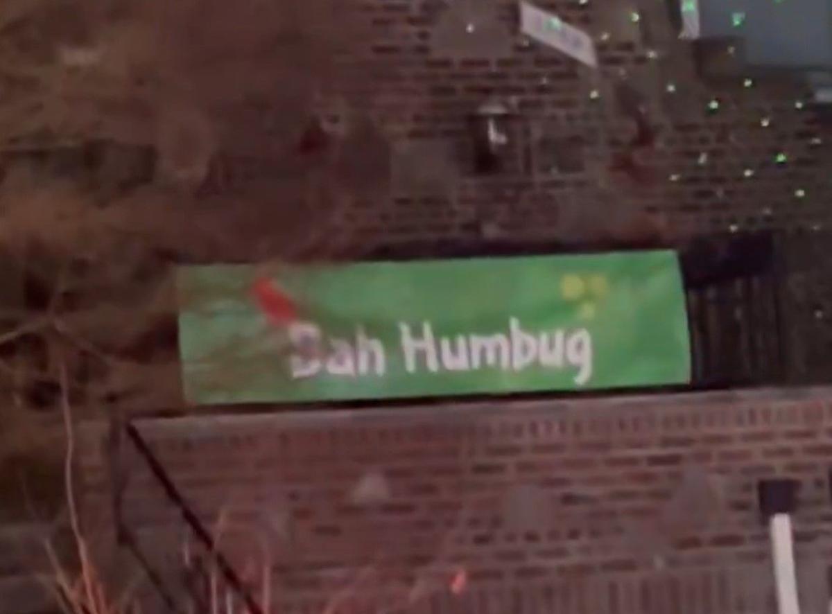 ومع ذلك، ربما لا يناسب جميع الأذواق. بينما تتحرك كاميرا كيلي كوب عبر المشهد، فإنها تكشف عن منزل مواجه بدون زخارف، باستثناء لافتة تقول “باه هراء”.