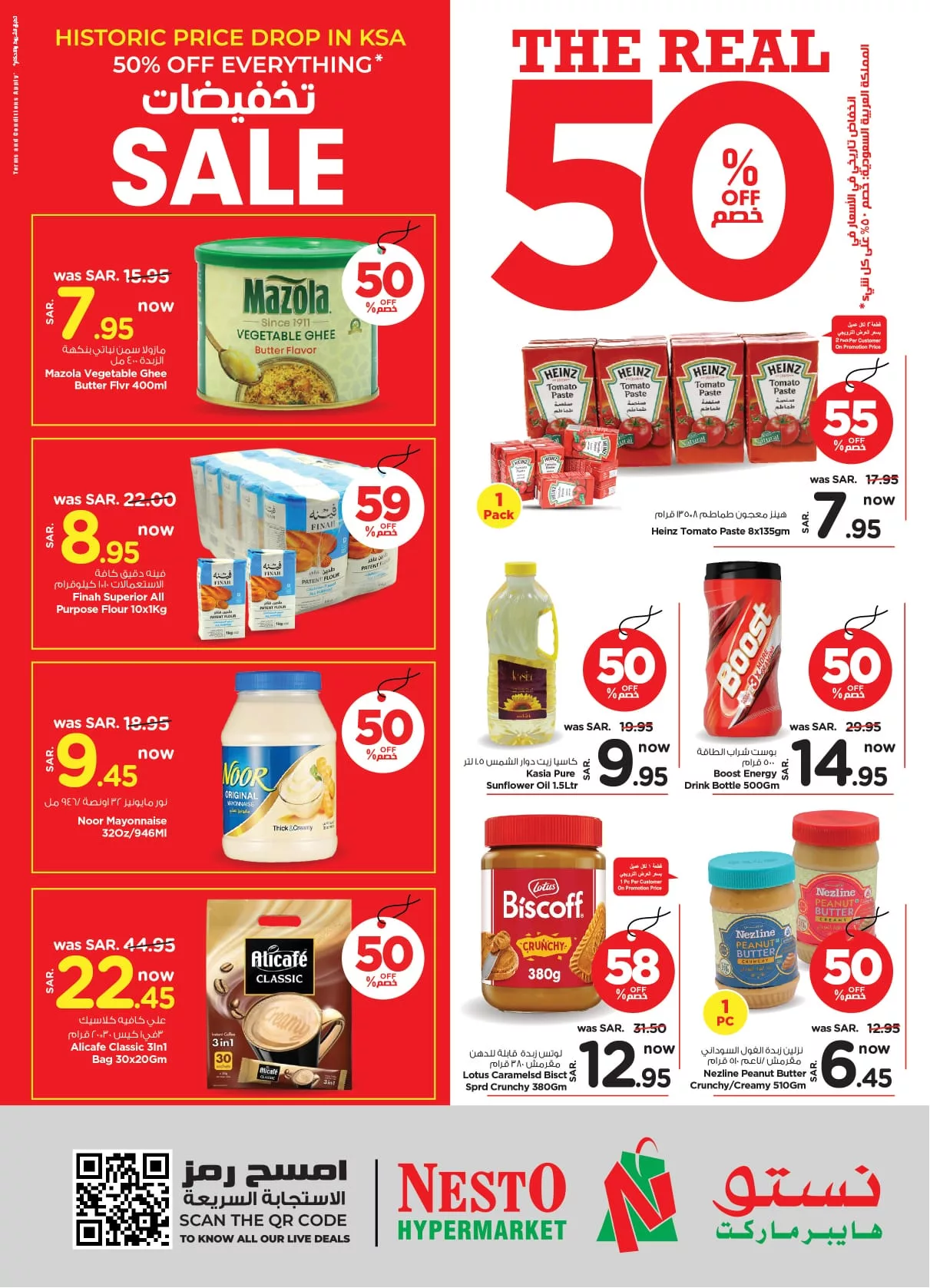 - مايونيز نور 320/946 مل: السعر القديم 18.95 ريال – السعر الحالي 9.45 ريال