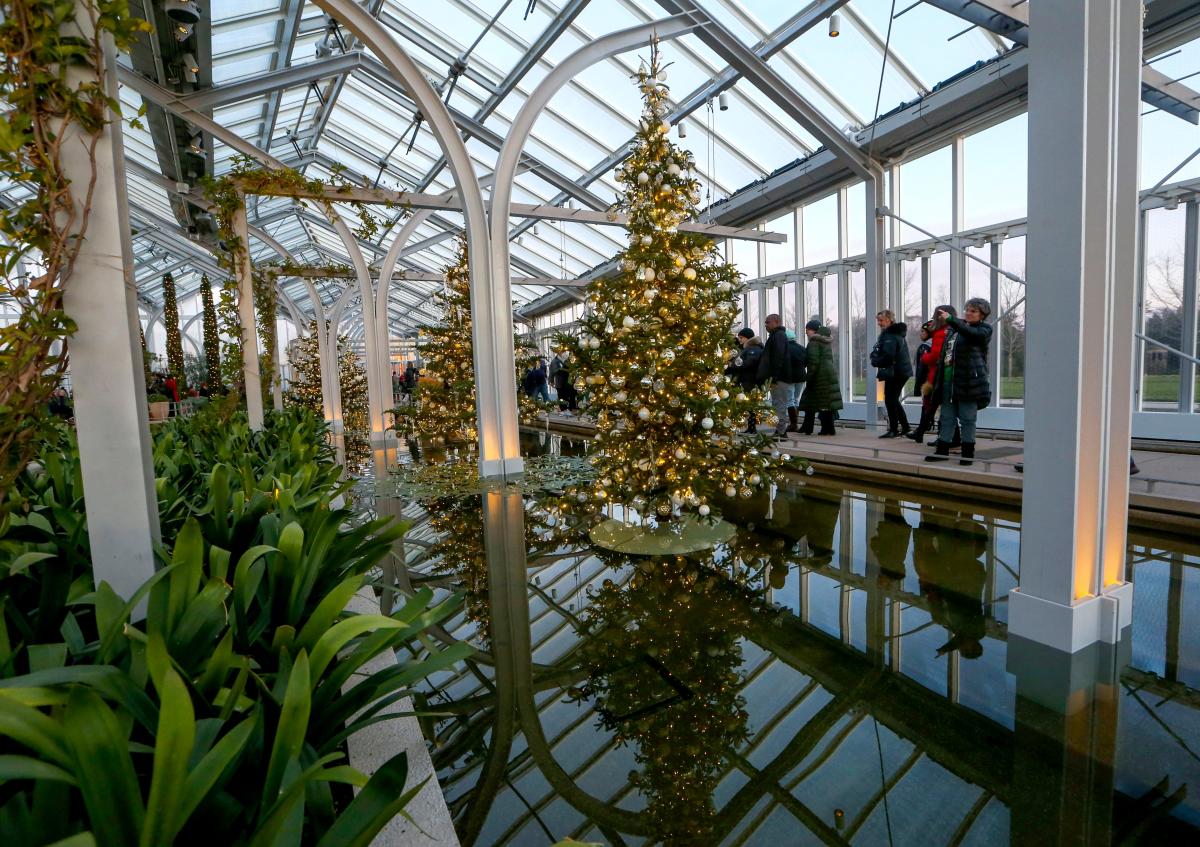 لاحظ الضيوف الأشجار في المعهد الموسيقي الغربي الجديد خلال موسم العطلات في حدائق لونجوود المشهورة عالميًا في 12 ديسمبر 2024.