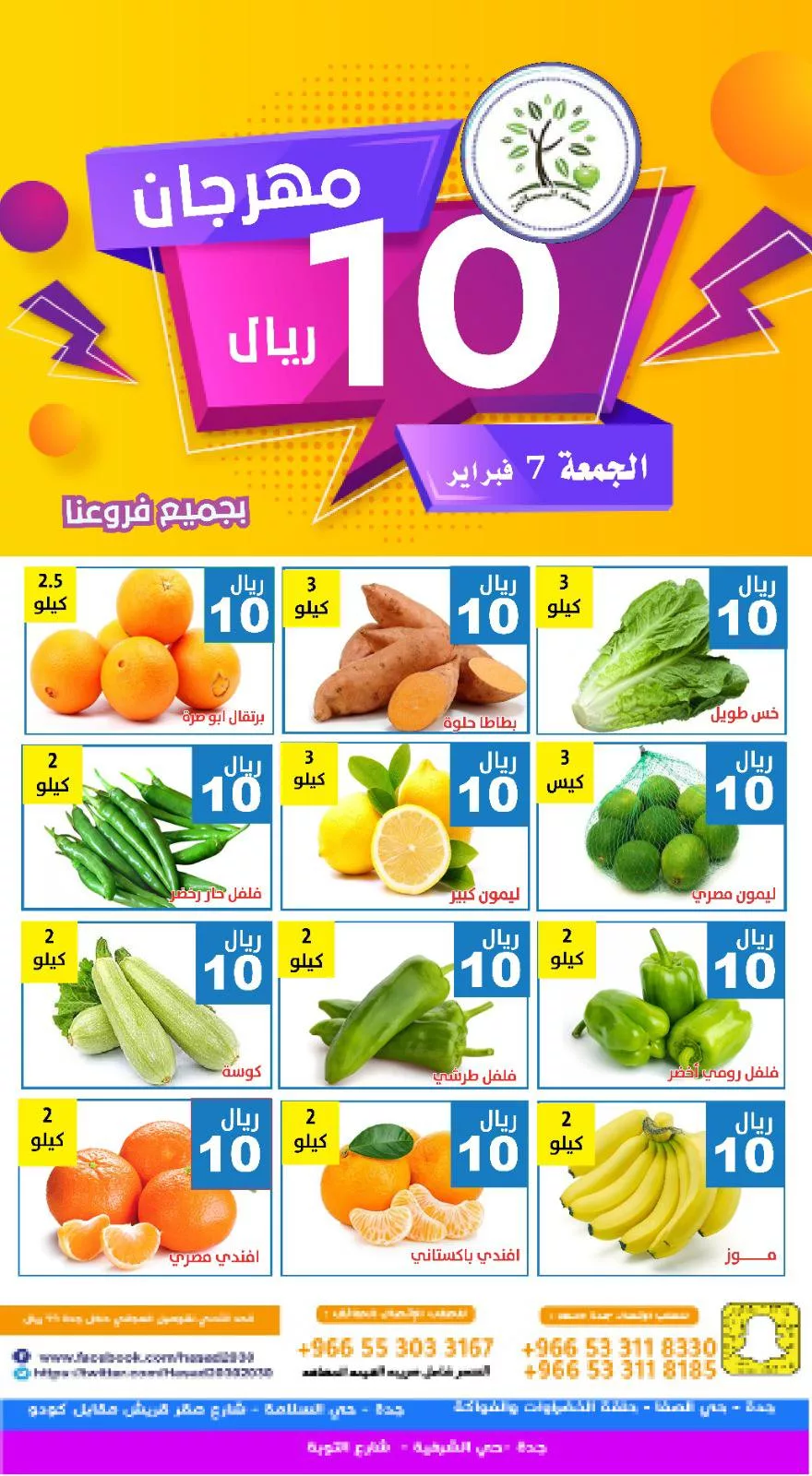 تقدم عروض مؤسسة حصاد البساتين مهرجان 10 ريال الجمعة 7 فبراير 2025 الذي يشمل مجموعة واسعة من الفواكه والخضروات الطازجة بأسعار منافسة وذلك حرصا على تقديم أفضل المنتجات بجودة عالية وأسعار في متناول الجميع يأتي هذا المهرجان ليكون فرصة مثالية لتوفير احتياجات الأسر السعودية من المنتجات الطازجة،