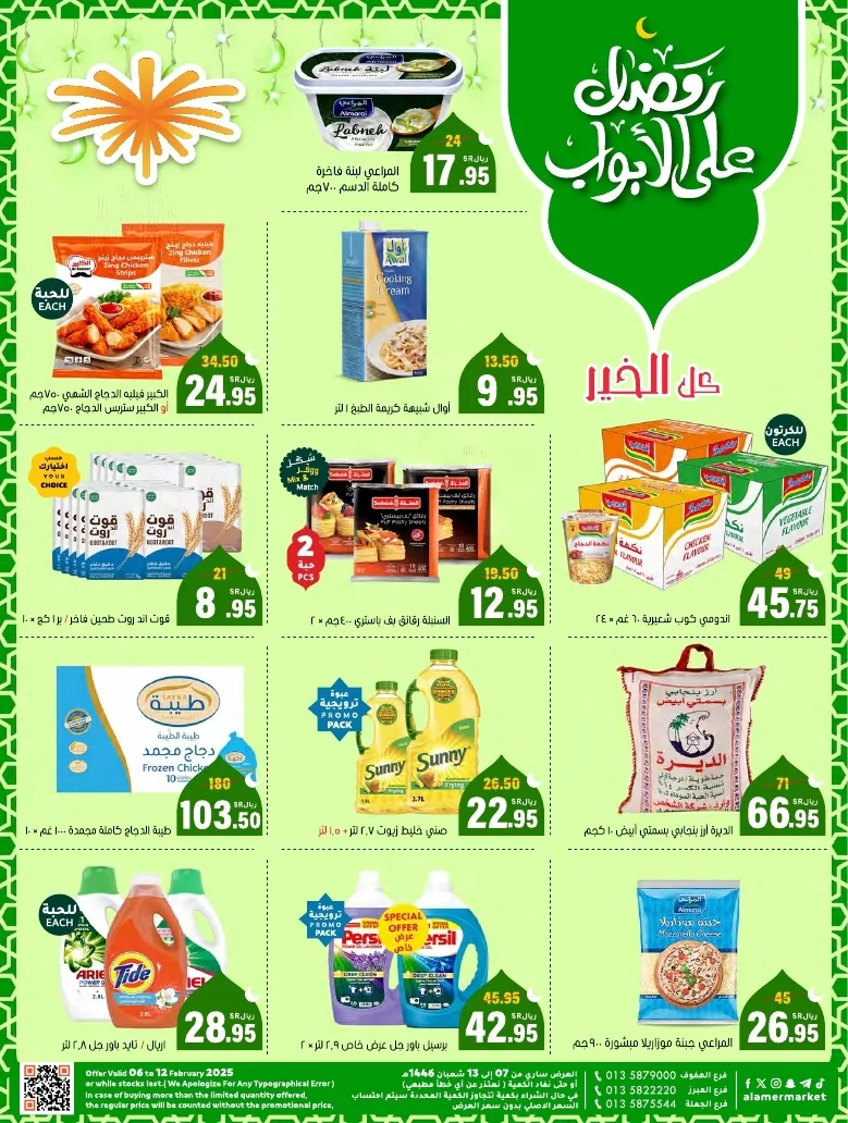 تقدم عروض أسواق العامر السبت 8 فبراير 2025 تخفيضات مميزة على مختلف المنتجات الغذائية والسلع الأساسية التي يحتاجها كل منزل و تشمل العروض تخفيضات كبيرة على اللحوم الطازجة والدواجن المجمدة بأفضل الأسعار لتلبية احتياجات العائلات خلال الشهر الفضيل كما تتوفر تشكيلة واسعة من الأجبان الطازجة ومنتجات الألبان