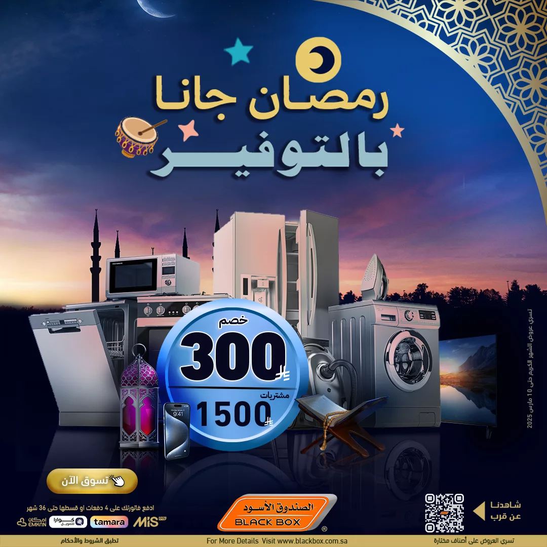 عروض الصندوق الأسود حتي الاثنين 10-3-2025 تقدم خصومات مذهلة على مجموعة واسعة من الأجهزة المنزلية مما يجعلها فرصة رائعة للتوفير خلال شهر رمضان و تشمل العروض قلايات هوائية و أقدار القلي و مكائن القهوة وأجهزة تحضير الطعام وكلها متاحة بأسعار تنافسية لا تفوت و يمكنك الآن اقتناء قلاية هوائية من كينوود أو قدر قلي