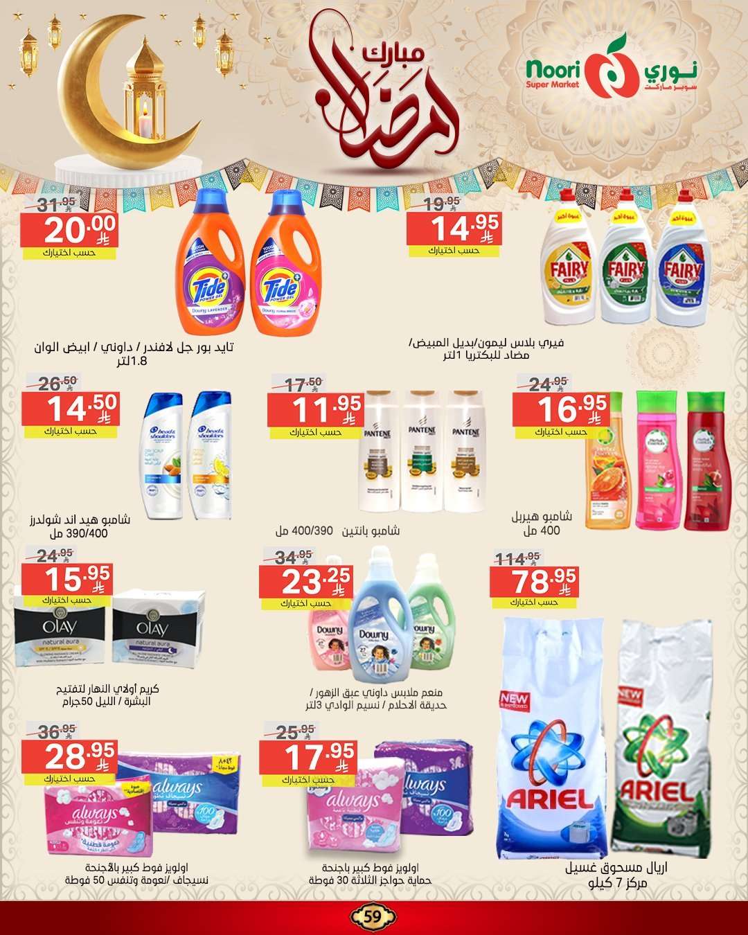 عروض نوري هايبر ماركت تشمل تخفيضات ضخمة على منتجات العناية الشخصية مثل الشامبو و الفوط الصحية ومساحيق الغسيل التي تجعل التسوق تجربة اقتصادية وذكية كما يمكنكم الحصول على خصومات حصرية على المناديل الورقية و منعمات الأقمشة والصابون السائل للحفاظ على النظافة والانتعاش طوال الشهر الكريم