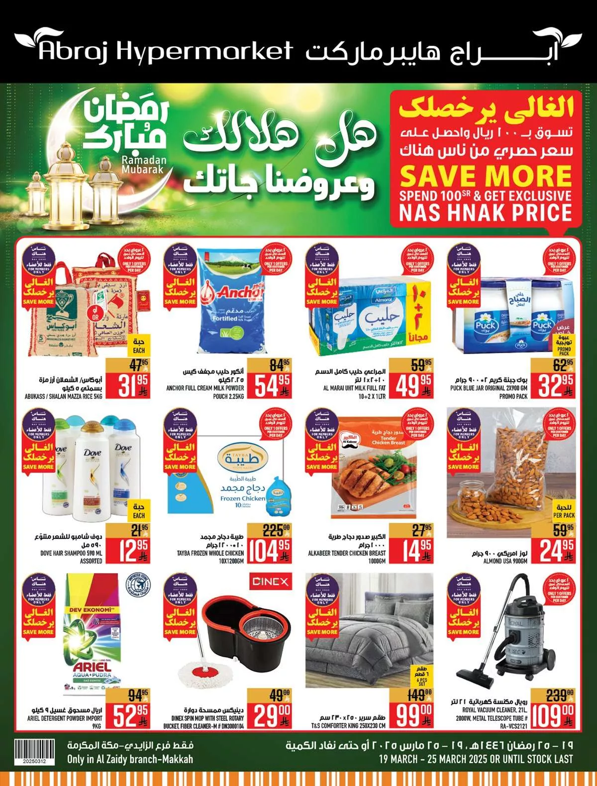 عروض أبراج هايبر ماركت مكة المكرمة الأربعاء 19 مارس 2025 تقدم خصومات كبيرة على الفواكه والخضروات الطازجة مثل العنب الأحمر و التفاح الأخضر والبرتقال بالإضافة إلى الطماطم و البطاطس والبصل بأسعار تنافسية كما تتوفر تخفيضات على منتجات الألبان مثل الحليب الطازج و الزبادي والجبن الأبيض،