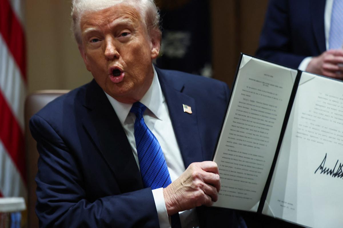 يحمل الرئيس الأمريكي دونالد ترامب أمرًا تنفيذيًا ، في البيت الأبيض ، في واشنطن العاصمة ، الولايات المتحدة ، 25 مارس 2025.