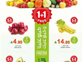 عروض التميمي الأحساء الأربعاء 26 مارس 2025 تشمل عروضا حصرية على الفواكه الاستوائية مثل الجوافة و الكيوي والأناناس بالإضافة إلى خصومات على الخضروات الجذرية مثل البطاطا الحلوة و اللفت والجزر العضوي كما تتوفر تخفيضات على الزيوت الصحية مثل زيت جوز الهند و زيت الأفوكادو وزيت بذور الكتان