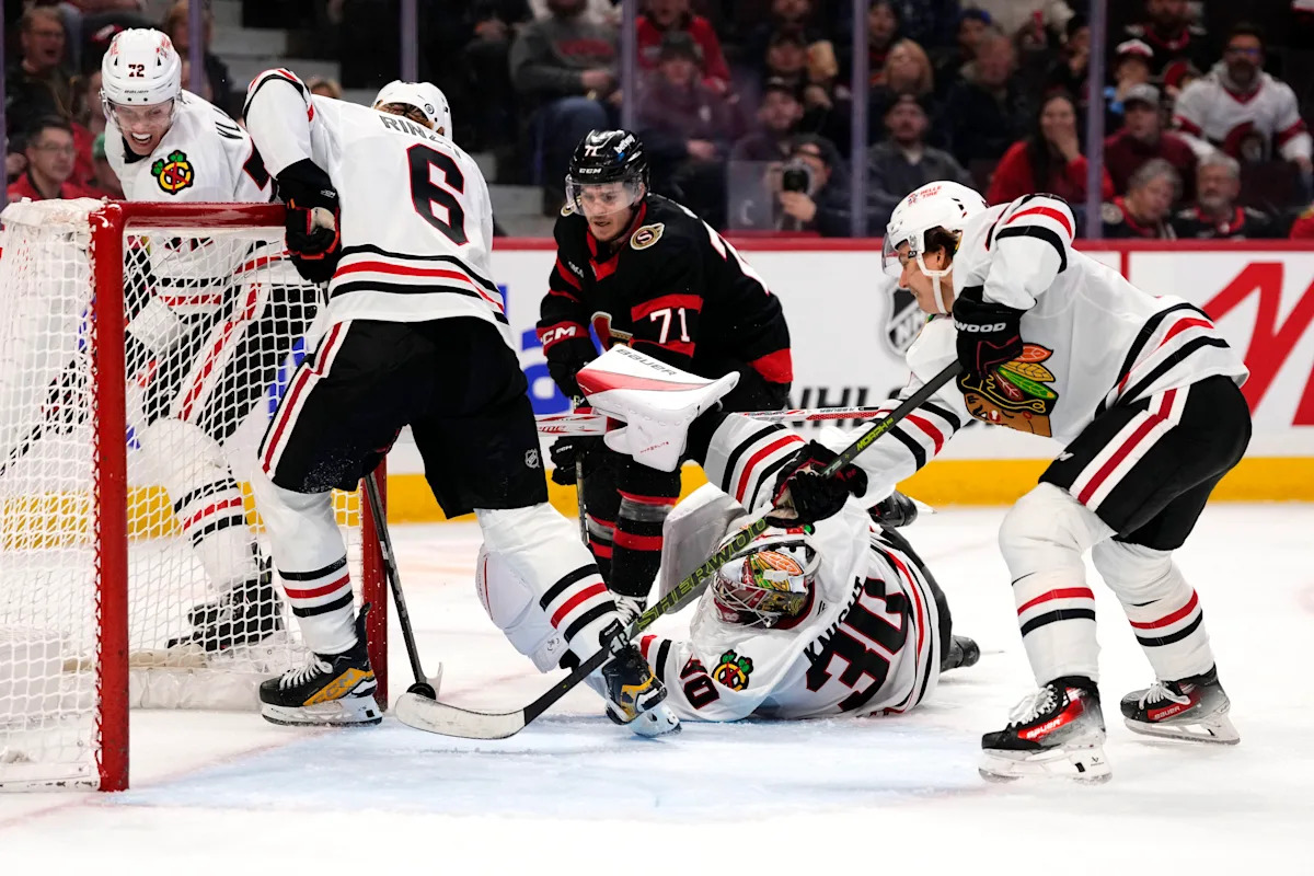 أوتاوا ، أونتاريو (AP)-سجل فرانك نازار 48 ثانية في الوقت الإضافي لإعطاء فوز شيكاغو بلاكهوكس 4-3 على أعضاء مجلس الشيوخ في أوتاوا مساء الثلاثاء في خاتمة موسمهم.