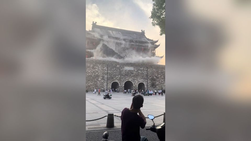 تم إرسال زوار موقع سياحي عمره قرون في شرق الصين يتدافعون بعد أن خرجت مئات من بلاط السطح وتتابع أكثر من طابقين على الأرض.