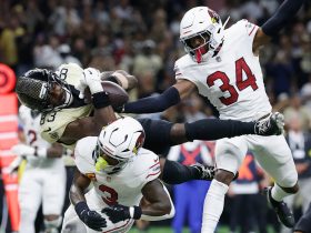 “كانت اليوم هي الخطوة الأولى ، ولكن يمكنك أن ترى حتى عندما يستجيب للأسئلة ، وما الذي يظهره في الإرسال ، حتى مشاهدته في بعض الإعدادات السريعة اليوم ، سترى القدرة في بعض التدريبات الفردية ، والحركات ، والقدرة على الدخول والخروج من الفواصل ، وأشياء من هذا القبيل ، وبعد ذلك الطول ومهارات الكرة لتتمكن من اختيار الكرات. “اعتقدت أنه قام ببعض الأشياء الجيدة حقًا ضد سياتل في الأسبوع 18 العام الماضي. ولذا فإنني شجعت على استخدام هذا حقًا كقيمة. وأنت تعرف يا رفاق ، نحن نحاول الحصول على أكبر عدد ممكن من ممثلين ذوي معنى في هذه الأماكن قدر الإمكان. إن أقرب شيء إلى كرة القدم الحقيقية دون أن نلعب عندما نتمكن من وضع الفوط. لذلك لا يزال هناك فهم لمجرد تحديد التأسيس ، لكن أعتقد أنه قد قام بعمل جيد حقًا.”