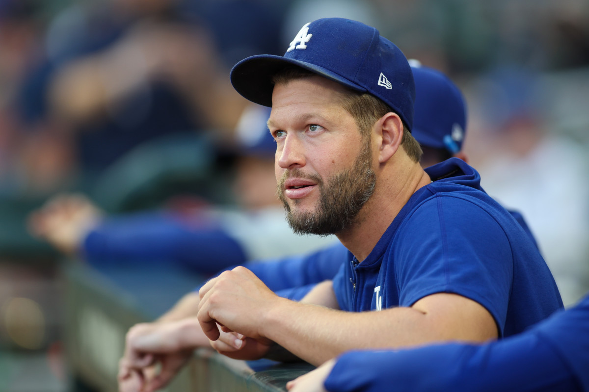ظهر كلايتون كيرشو من دودجرز بعد إطلاق النار بعد ملاحظة ما بعد اللعبة على أثلون الرياضية.