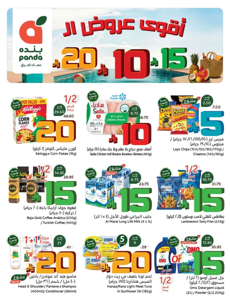 عروض بنده هذا الاسبوع تشمل مجموعة واسعة من العصائر والمشروبات المتنوعة مثل مشروبات الربيع وصن توب ودول بالإضافة إلى العصائر الطازجة من المراعي وصفا ونكتار بنكهات متعددة وتستمر العروض في قسم الشاي حيث تتوفر ماركات شهيرة مثل ليبتون وأحمد وربیع بأصناف مختلفة