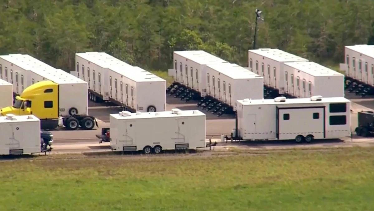 سلسلة من المولدات المحمولة وشاحنات التفريغ المحملة بأوساخ ملء تدفق في الموقع يوم الخميس ، وفقًا للناشطة جيسيكا ناماث ، التي شهدت النشاط. تتقدم الولاية إلى الأمام ببناء مركب من الخيام الشاقة والمقطورات والمباني المؤقتة الأخرى في المطار المملوك للمقاطعة الواقعة في محمية بيج Cypress الوطنية ، على بعد حوالي 45 ميلًا (72 كيلومترًا) غرب وسط مدينة ميامي.