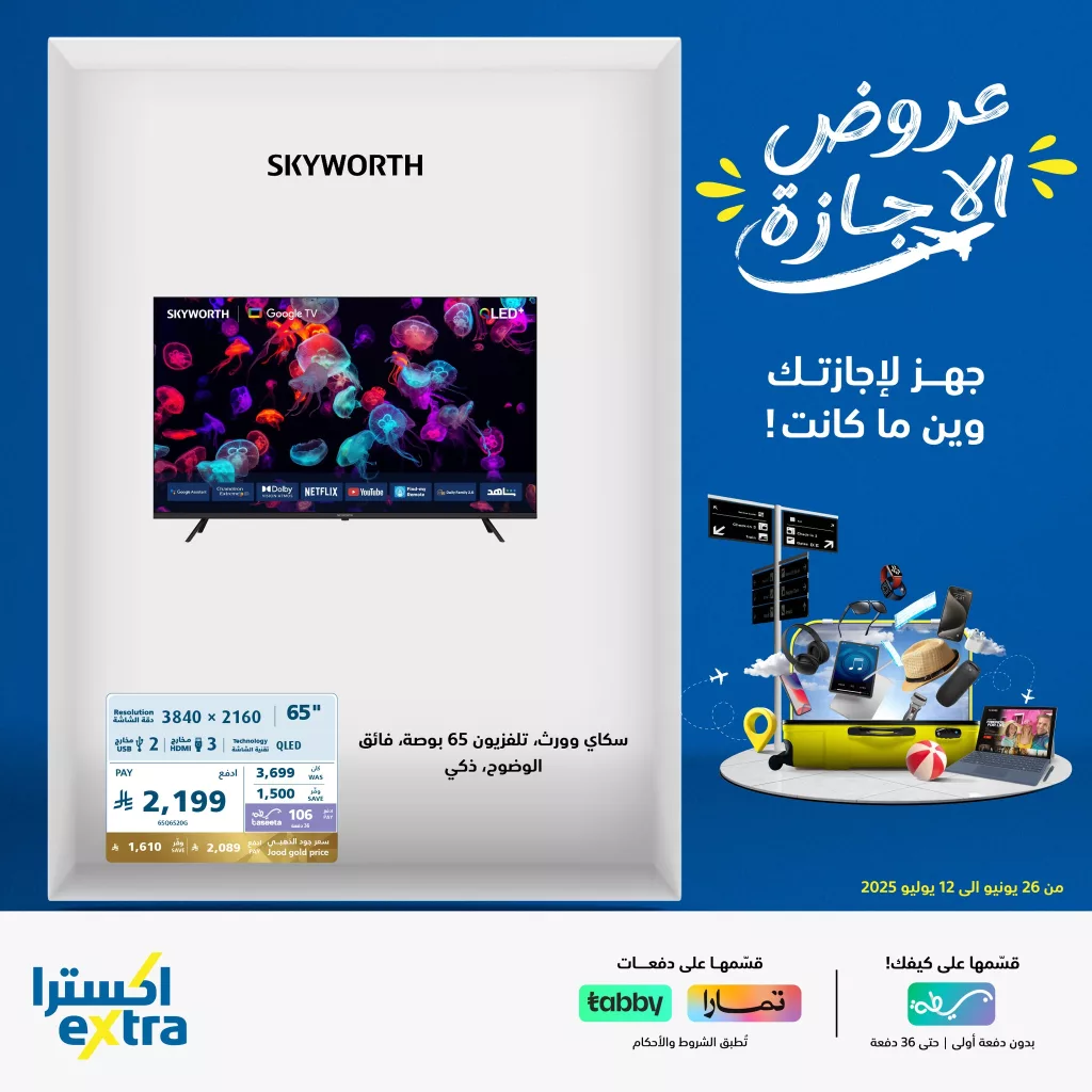 عروض اكسترا السعودية اليوم تتيح لك فرصة اقتناء شاشة تلفاز متطورة من علامات موثوقة مثل سامسونج وال جي بتصميمات مميزة وجودة عالية توفر ألوانًا حقيقية وتجربة صوت وصورة غامرة وتدعم الاتصال السلس بالتطبيقات الذكية مثل نتفليكس ويوتيوب