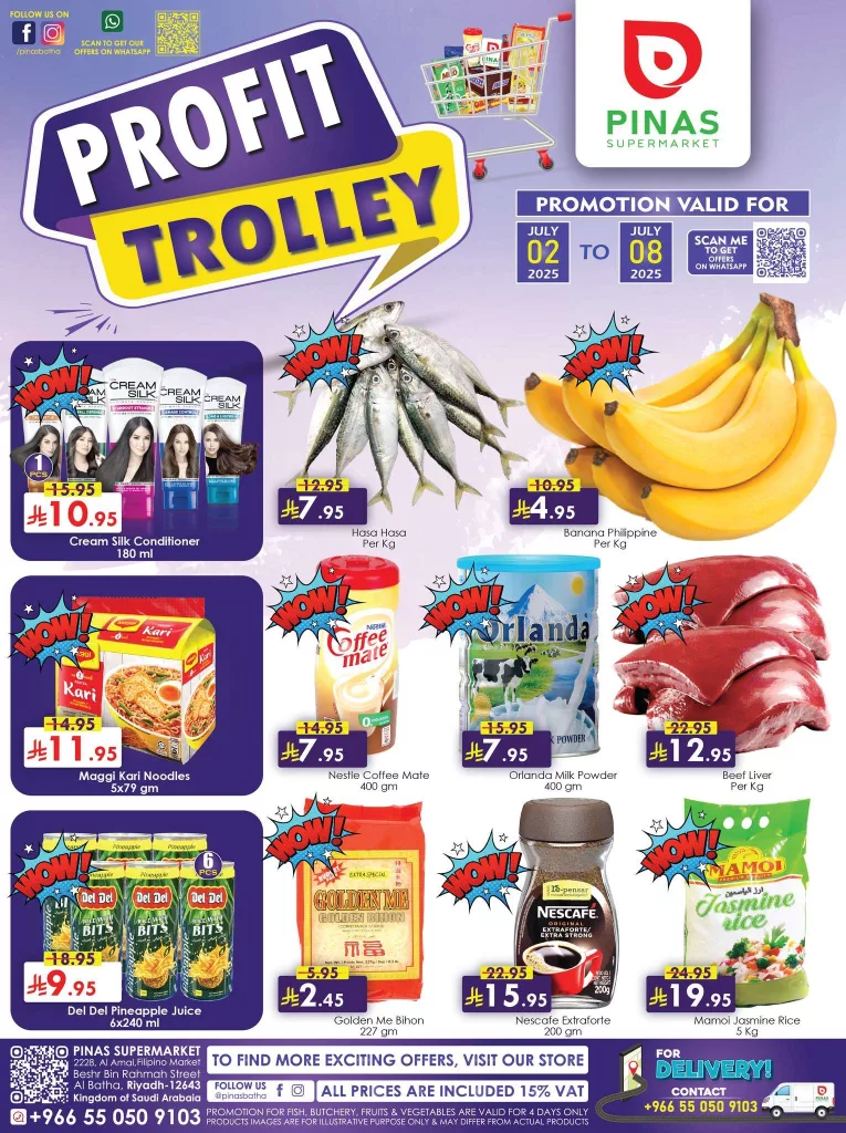 عروض بيناس ماركت الرياض يشمل أيضا منتجات سريعة التحضير مثل النودلز المتنوعة والخلطات الجاهزة للأطباق الفلبينية المميزة بجانب القهوة والمبيضات والحليب البودرة بالإضافة إلى المأكولات البحرية الطازجة والفواكه واللحوم الطازجة التي تناسب مختلف الأذواق وتضفي تنوعاً على مائدة الأسرة