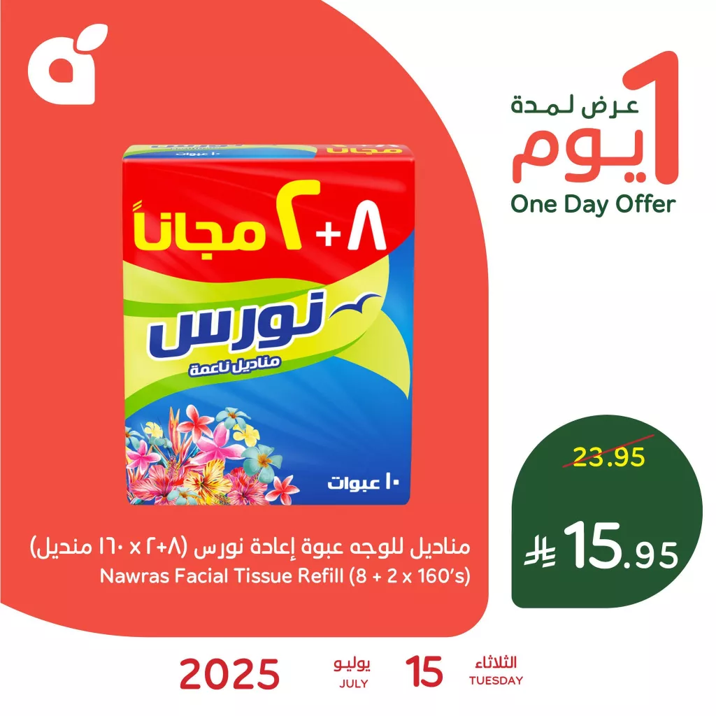 - مناديل للوجه عبوة إعادة نورس (8 + 2 × 160 منديل) – 15.95 ريال (بدلاً من 23.95 ريال)