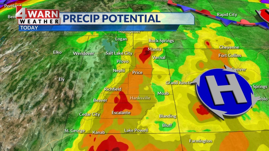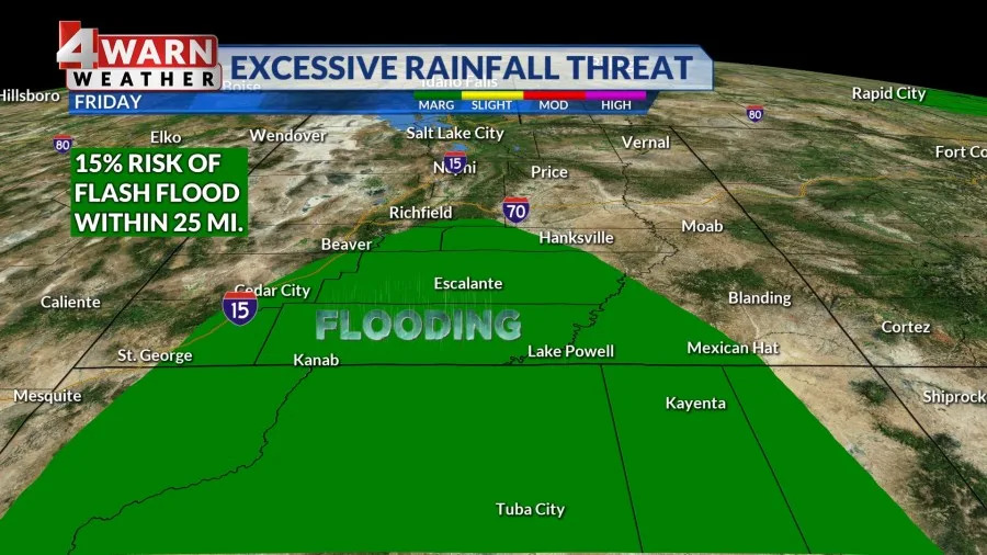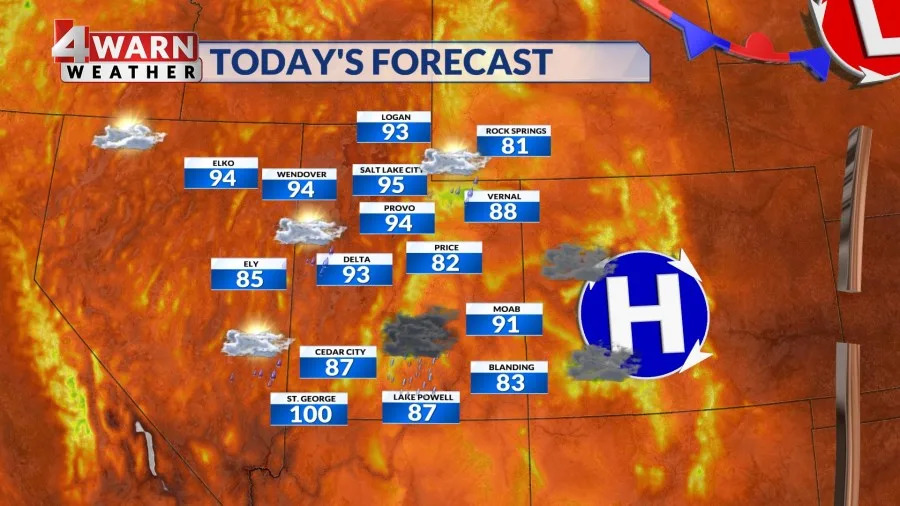 سوف تدفئة درجات الحرارة المرتفعة في منتصف التسعينيات من أجل واجهة Wasatch ، وسوف تتسلق المستويات المرتفعة بالقرب من 100 من أجل Sw Utah. سيحتفظ يوم الجمعة بأفضل فرصة لرؤية جيوب من الأمطار الأثقل للمناطق جنوب I-70. لدينا خطر هامشي للفيضانات المعزولة من مواقعنا في جنوب ولاية يوتا.