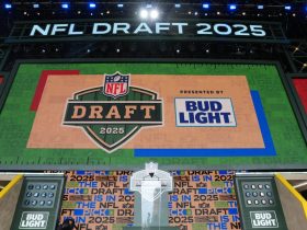 “لا ، ليس هذه النقطة” ، قال بيمر وهو يطرق على المنصة الخشبية. “بصحة جيدة. لا يوجد شيء جديد من الناحية التي تحدثنا عنها الأسبوع الماضي. هناك اثنان من اللاعبين الذين يعودون من بعض مشكلات الأنسجة الرخوة ، أوتار الركبة ، والأخوات ، وأشياء من هذا القبيل ، والتي لا أعتقد أنها ستمنعهم من اللعب يوم الأحد ولكن قد يحددون من مقدار ما يلعبونه. لكن لا ، نحن في حالة جيدة جدًا ، مقارنةً بالواقع الماضي ، مقارنة بالأسبوع الماضي.”