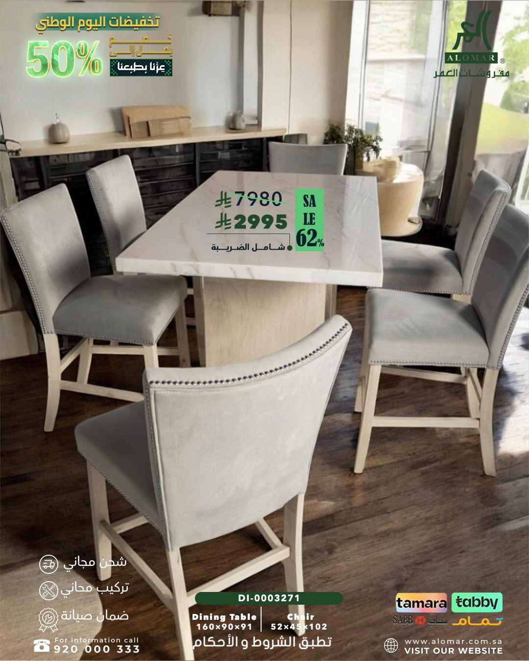1 29 - تخفيضات مفروشات العمر على طقم طاولة طعام فاخر بخصم 62% ضمن عروض اليوم الوطني