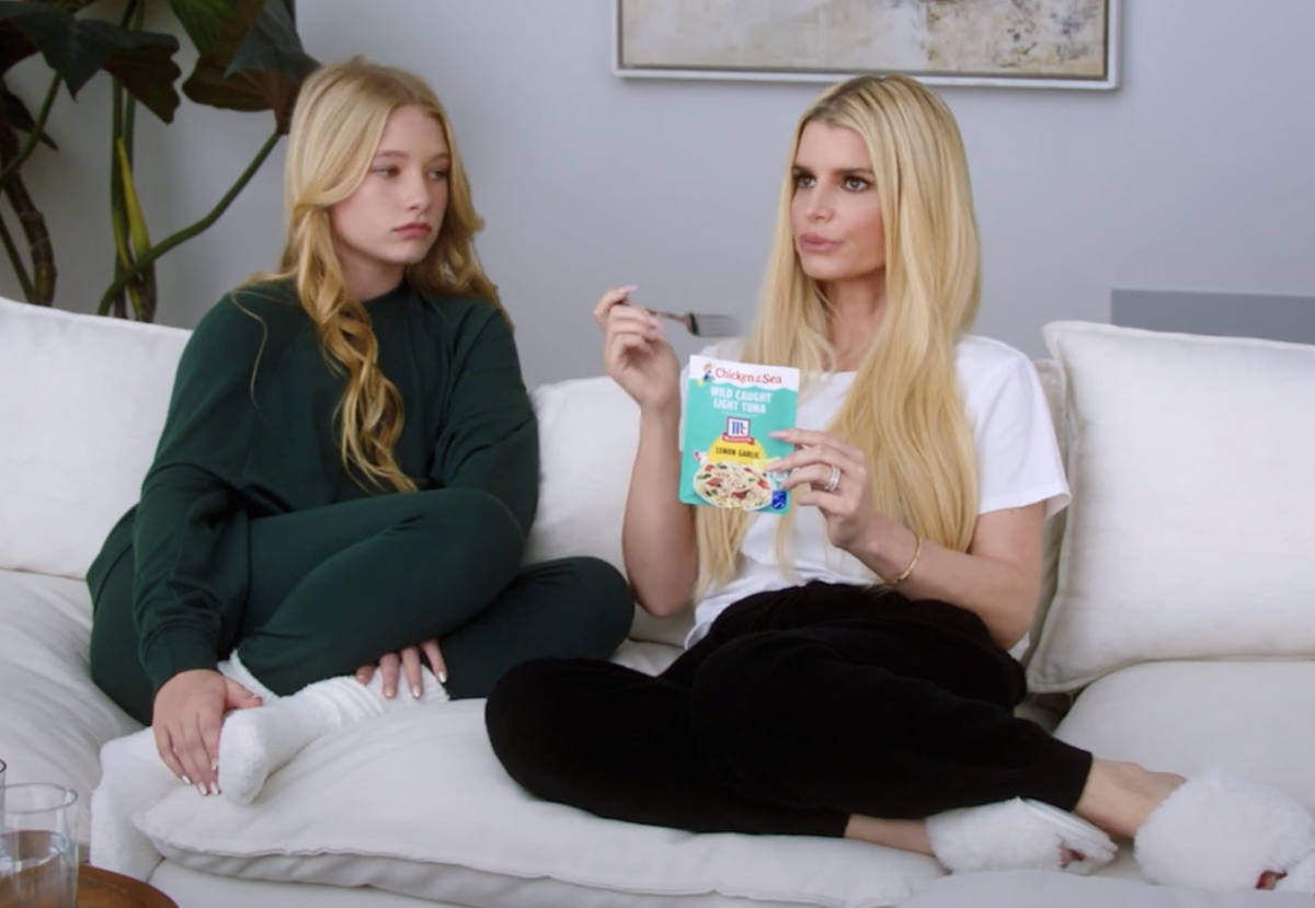 إنها لحظة دائرة كاملة بالنسبة لجيسيكا سيمبسون وهي تعيد النظر في خطئها السيئ السمعة على الهواء مع ابنتها ماكسويل جونسون البالغة من العمر 11 عامًا بجانبها في إعلان جديد لفيلم Chicken of the Sea.