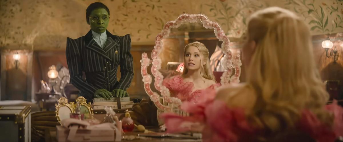 ماذا تعرف: يبدو أن كل شيء كان ورديًا وأخضرًا للأشهر التي سبقت ذلك شرير، الفيلم مقتبس من مقدمة برودواي المحبوبة ساحر أوز رويت من منظور ساحرتين، إلفابا وغليندا. [Yahoo Entertainment/NBC News]