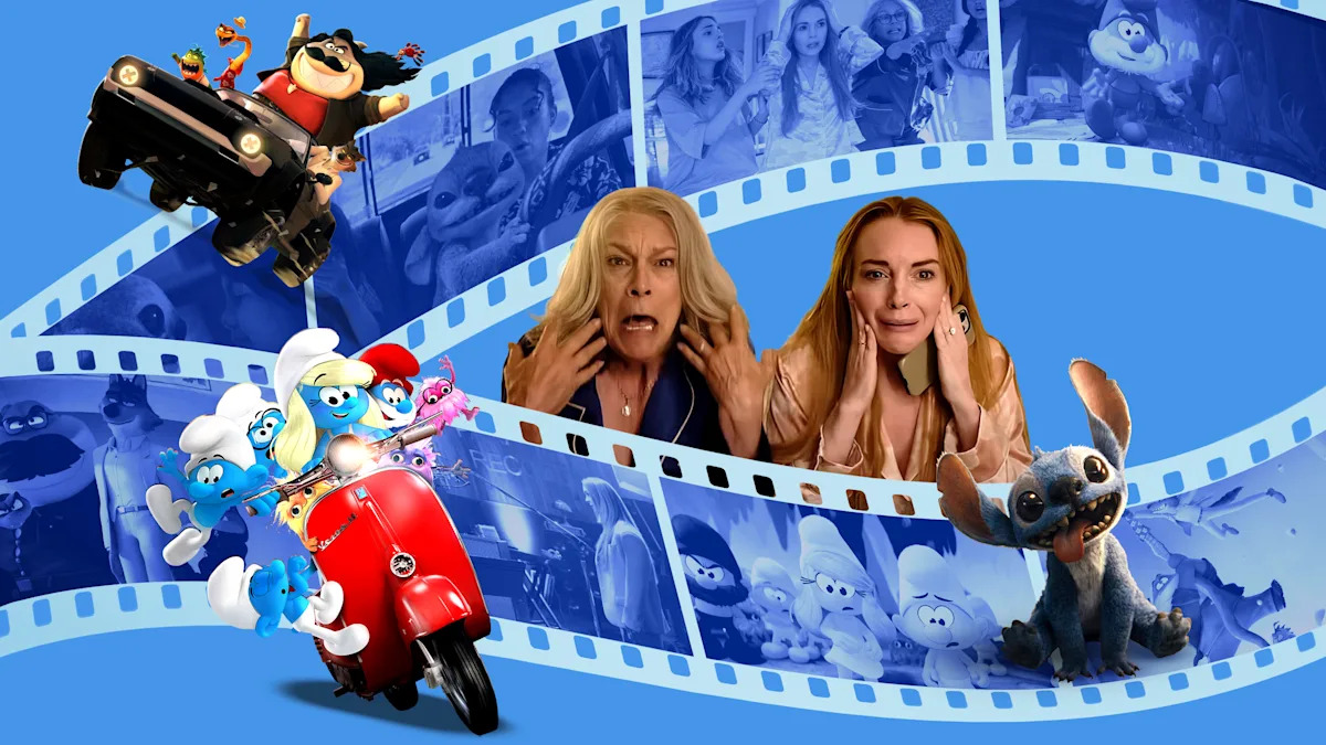 لقد ضربت السينما بقوة هذا الصيف لمشاهدة أفلام صديقة للعائلة مثل فظيع الجمعة و ليلو وغرزة. (توضيح الصورة: Annelise Capossela for Yahoo News ؛ الصور: Dreamworks Animation/Universal Pictures/Counting Everett Collection (3) ، Paramount Pictures/Courtesy Everett (3)