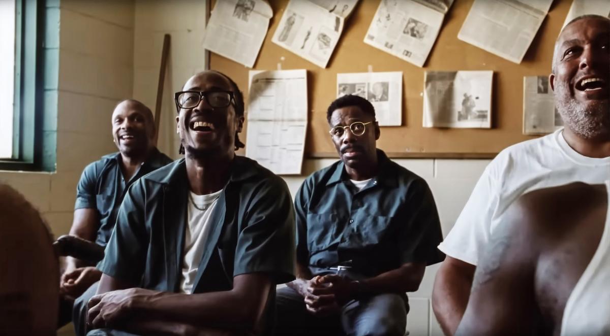 كلارنس ماكلين وكولمان دومينغو الغناء الغناء. (دومينيك ليون/A24/مجموعة إيفريت المجاملة)