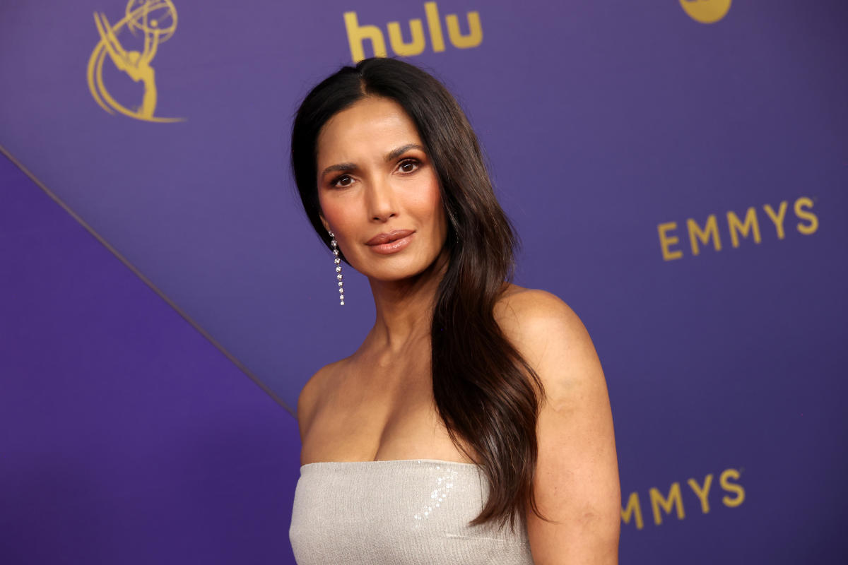 تذوق الأمة النجمة بادما لاكشمي، التي من المقرر أن تقدم جائزة لأول مرة في الحفل، تتألق بفستان أبيض عاجي بدون حمالات.