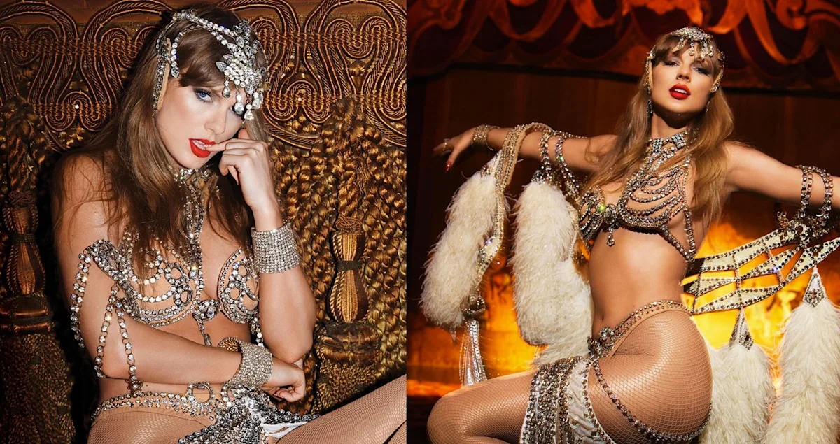 يبدو أن السحر المستوحى من Art Deco هو موضوع Swift الذي تم الكشف عنه مؤخرًا showgirl عصر. من بين ألبومها المميز ، توجد فرقة أعمالها الفنية المميزة عبارة عن قطعة واحدة من الحمراء العميقة ذات الحمراء الحمراء مع صد مشد واللهجات المدببة على طول تمثال نصفي من مجموعة أشقر خريف/شتاء 2024. أكملت Swift المظهر مع قفازات الأوبرا المطابقة والأحذية عالية الركبة ، جنبا إلى جنب مع لباس ضيق شبكة السمك.