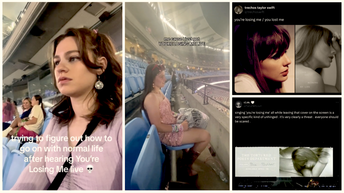 في 15 فبراير، تايلور سويفت لعبت أغنية “You Losing Me” – وهي المرة الأولى التي تعزف فيها الأغنية على الهواء مباشرة – أثناء توقفها في “Eras Tour” في ملبورن، أستراليا. لأنها شغلت الأغنية مع صورة ألبومها القادم، قسم الشعراء المعذبين، التي تم عرضها على شاشة عملاقة خلفها، لم يستطع المعجبون إلا أن يتوقعوا أن هذا أثبت أيضًا نظرية نقدية: أن ألبومها الجديد يدور، في الواقع، حول انتهاء علاقتها التي دامت ست سنوات مع جو ألوين.